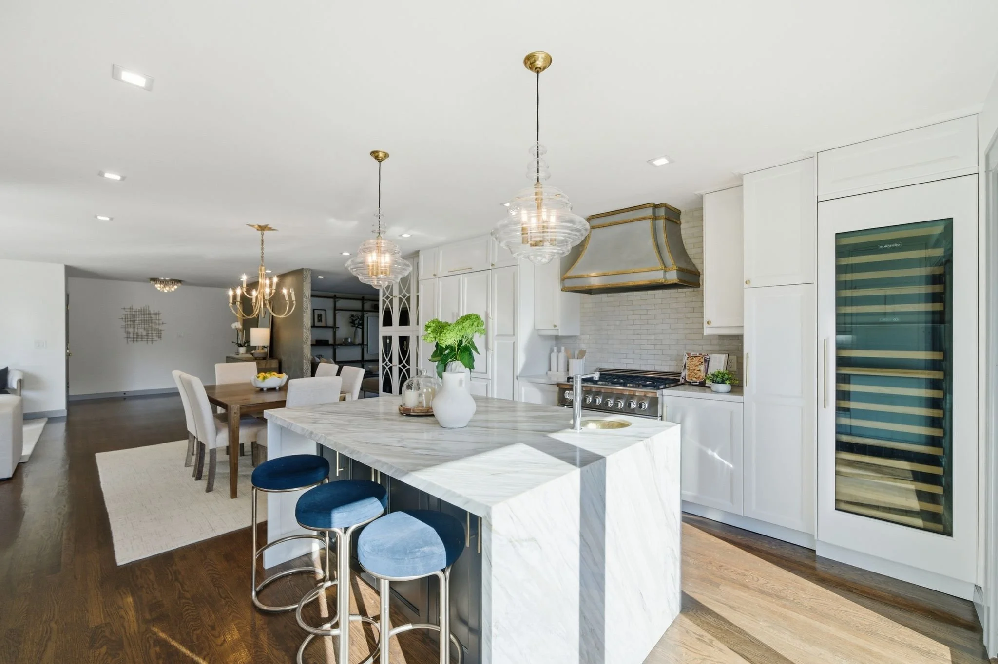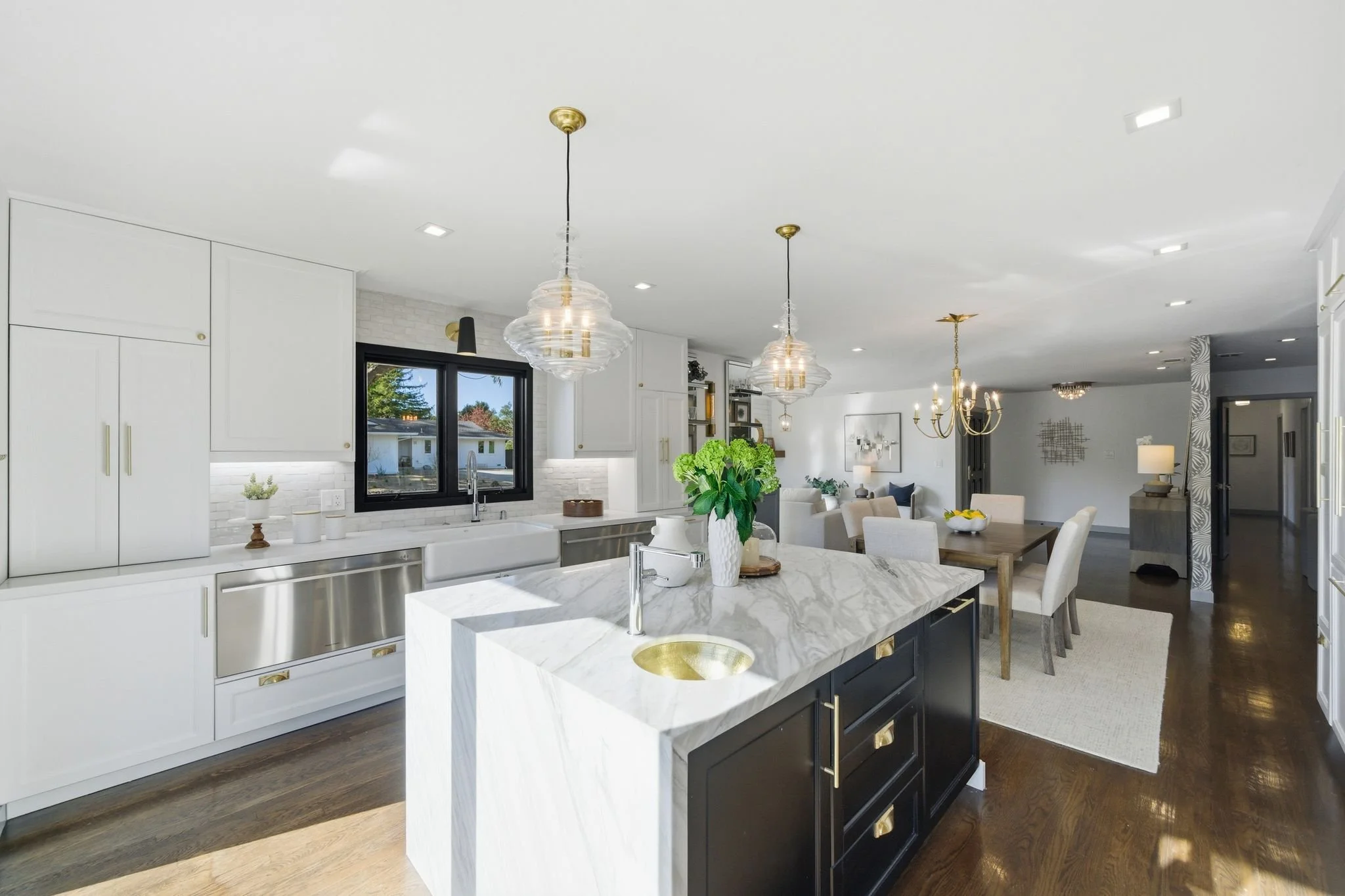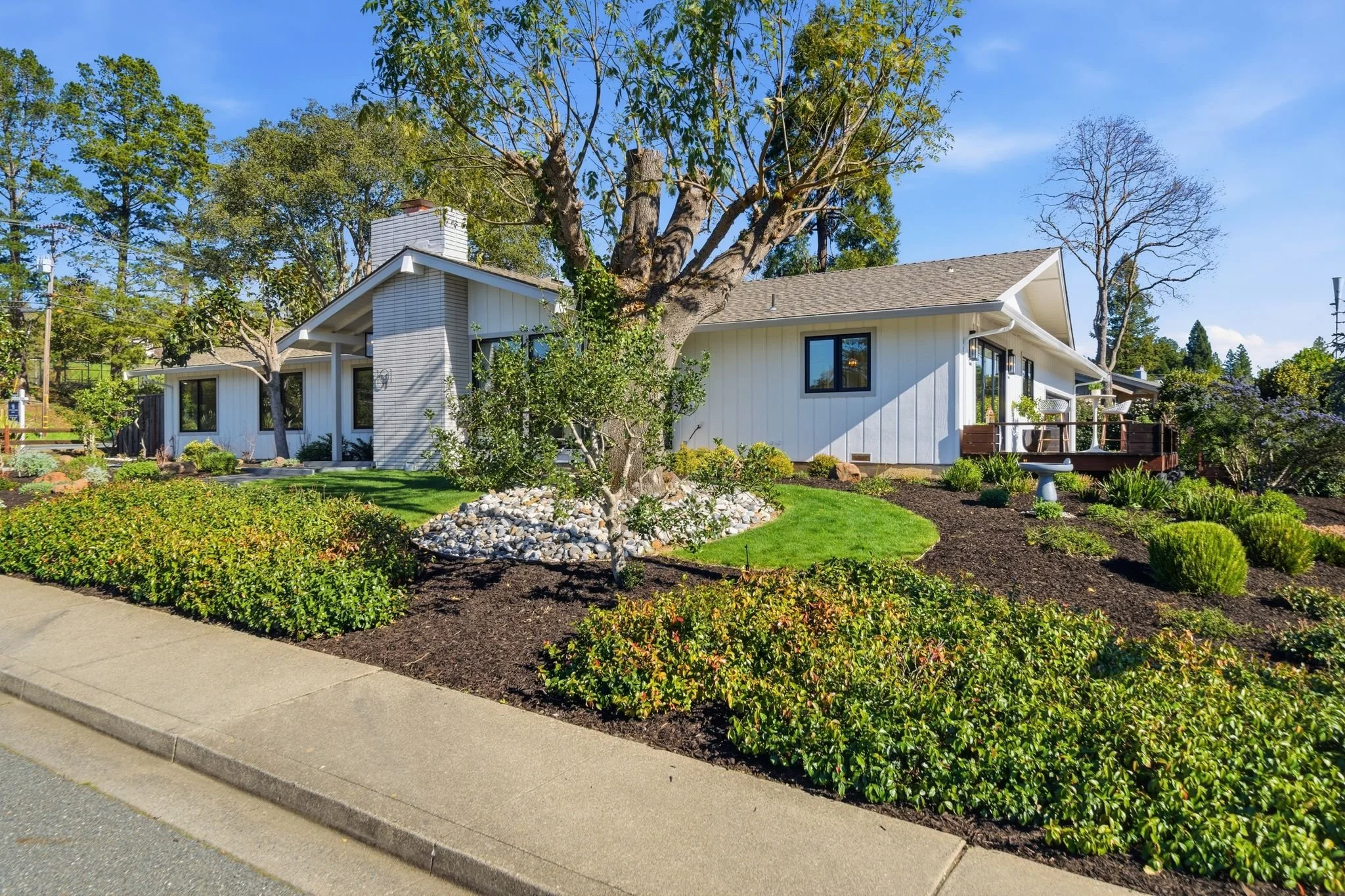 You’ll fall head over heels for this beautifully remodeled, one-story 4 bedroom, 3 bath home. The impeccable design showcases a bright, open layout featuring a spacious living room with fireplace, an adjacent dining area, and an inviting family room—perfect for both everyday living and entertaining. The stunning kitchen serves as the heart of the home, showcasing a large island, high-end appliances, sleek finishes, and direct access to a sunny deck—a wonderful spot for morning coffee or evening gatherings.